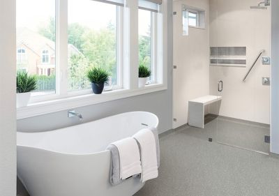 Vinyl/safety flooring is widely used in both commercial and domestic environments. It’s hard wearing, non-slip features are perfect for use in bathrooms, wet rooms, kitchens, changing rooms and clinical areas.